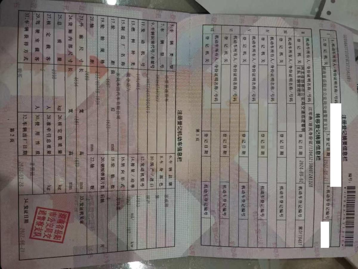 车架号是否受损 未知 使用性质 非营运