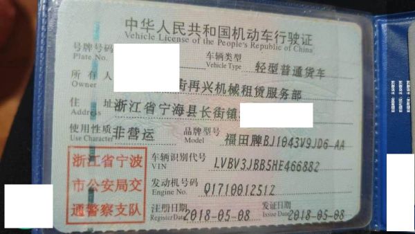车辆归属地 浙江省宁波 车辆停放仓库 浙江省宁波市宁海县