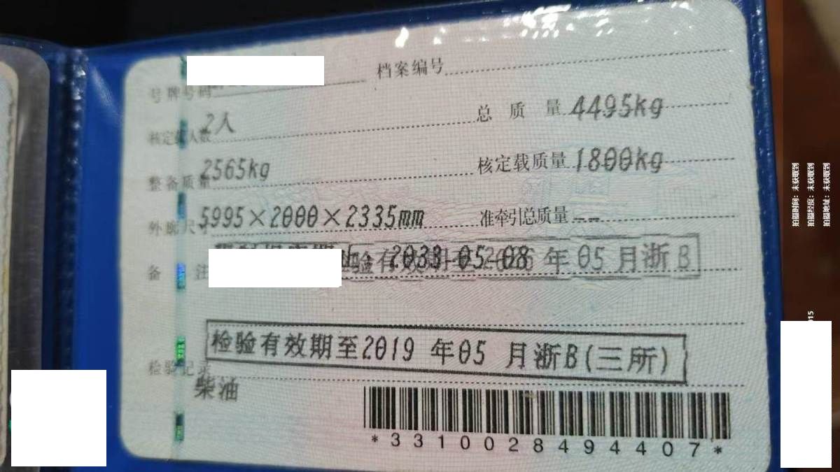 车架号是否受损 未知 使用性质 非营运