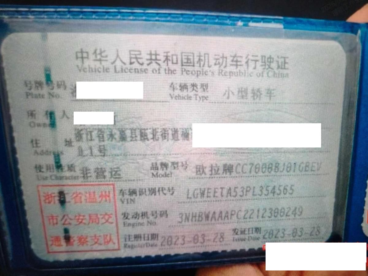 初次登记日期 2023-03-28 车辆名称 欧拉好猫