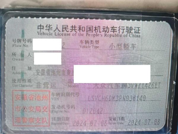 车辆归属地 安徽省池州市 车辆停放仓库 安徽省池州市池州市