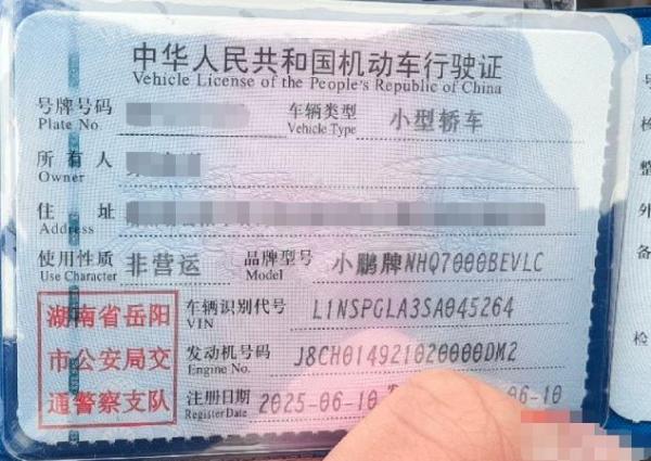 初次登记日期 2025-06-10 车辆名称 小鹏牌