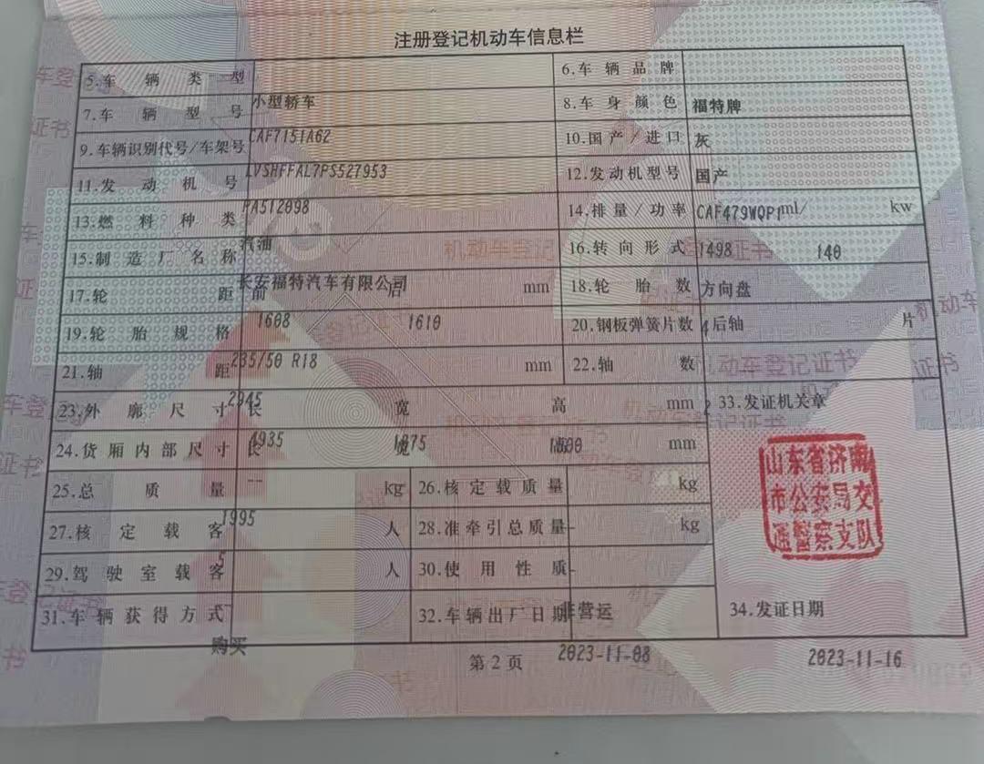 车牌号 鲁****** 品牌 福特