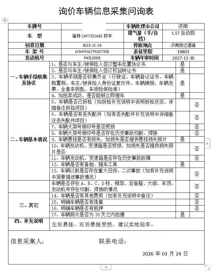 拍卖编号 N202603250161 事故类型 碰撞车
