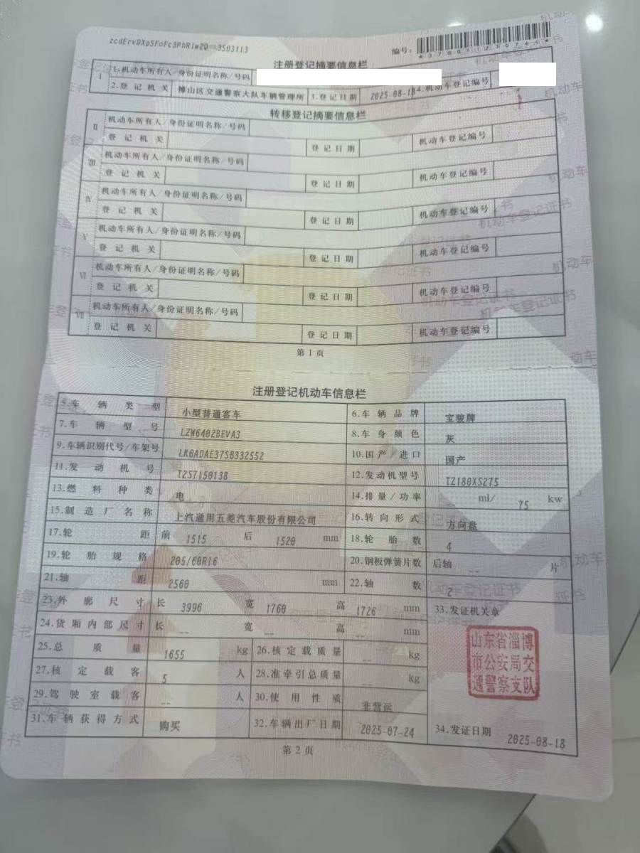初次登记日期 2025-08-18 车辆名称 宝骏悦也