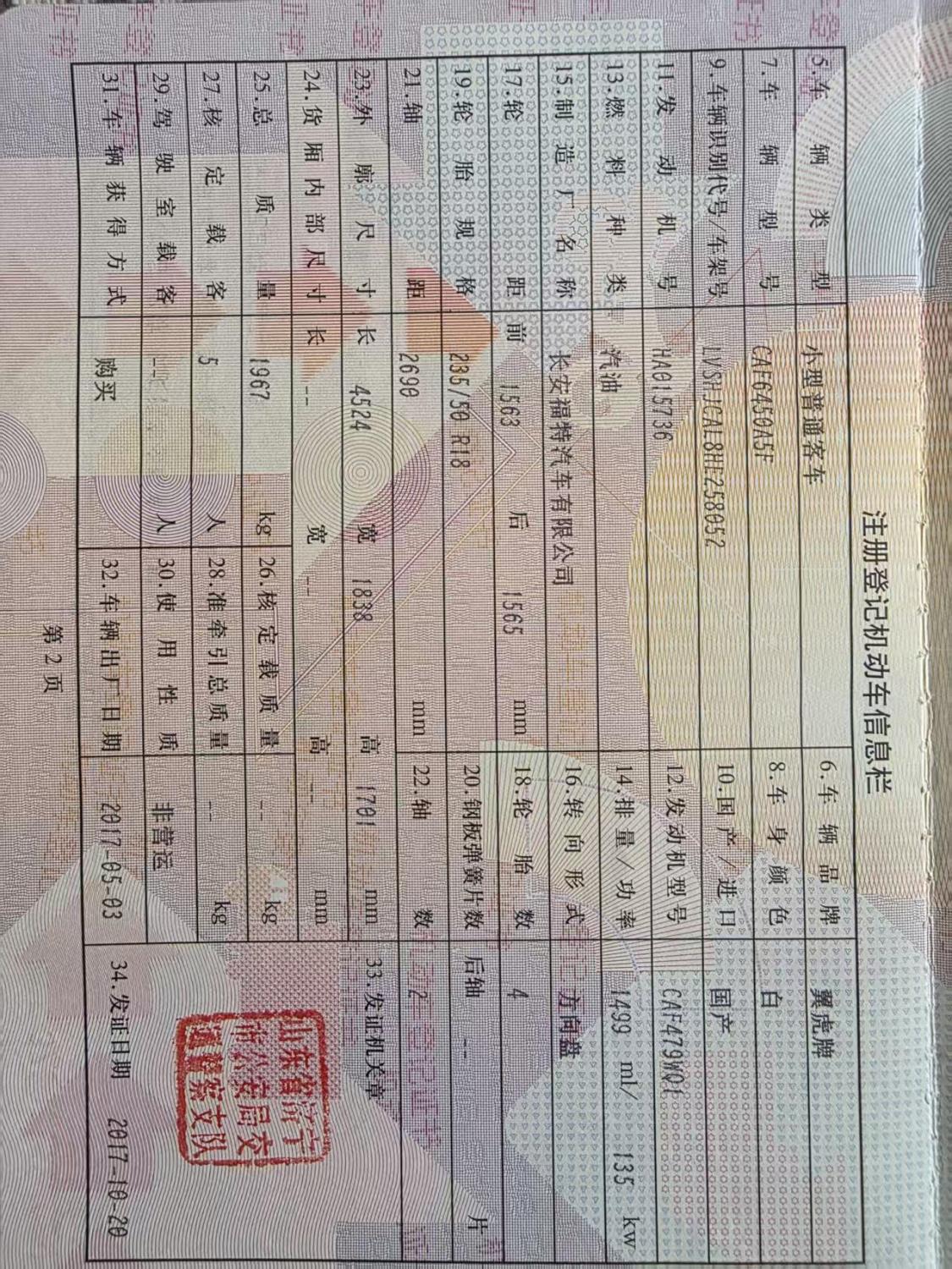 车辆归属地 山东省济宁市 车辆停放仓库 山东省济宁市