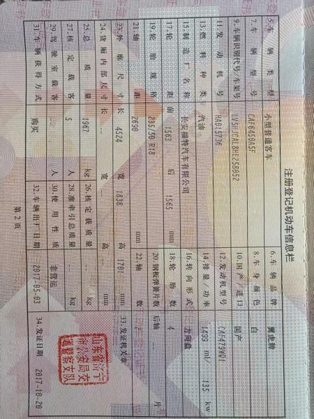 底盘号码 LVSHJCAL8HE258052 变速箱类型 手自一体