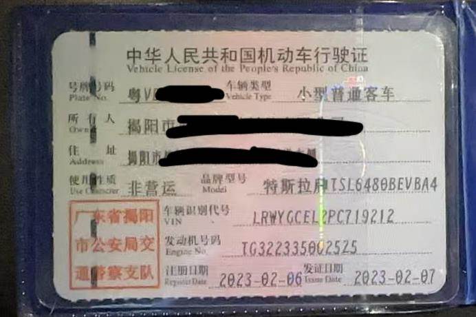 初次登记日期 2023-02-06 车辆名称 特斯拉 Model