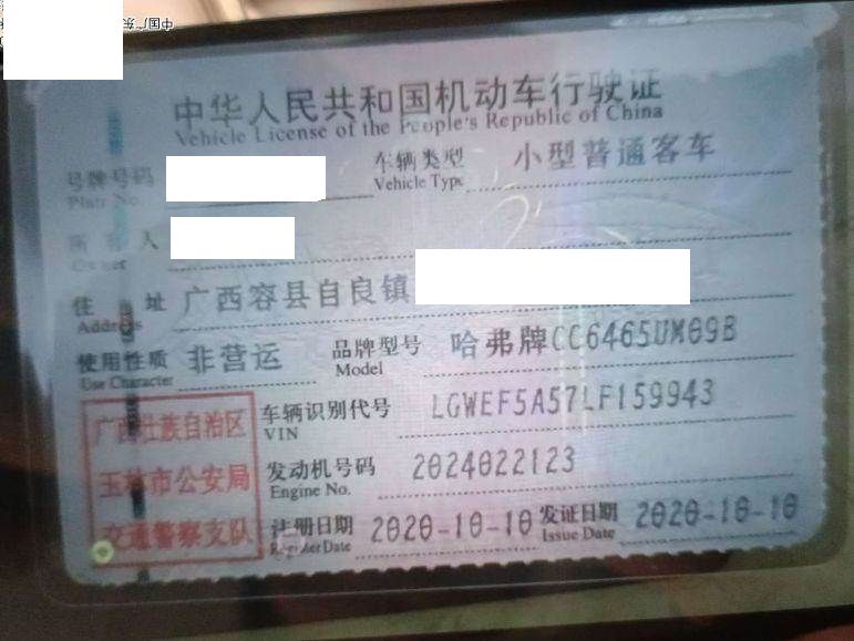 初次登记日期 2020-10-10 车辆名称 哈弗F7