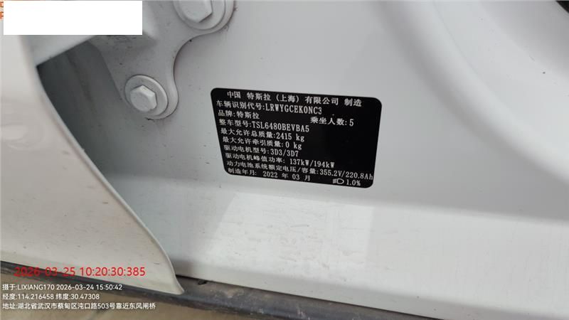 初次登记日期 2022-03-15 车辆名称 特斯拉 Model