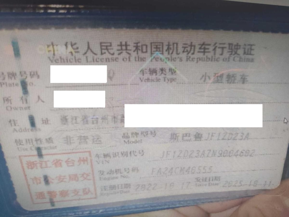 车牌号 浙****** 品牌 斯巴鲁