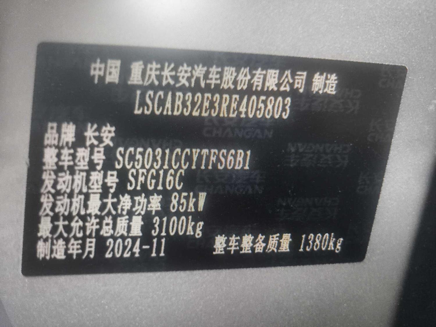 初次登记日期 2024-12-25 车辆名称 长安跨越 新豹T3