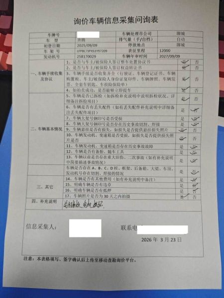 车架号是否受损 未知 使用性质 非营运
