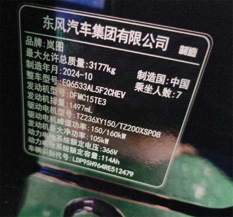 初次登记日期 2025-05-08 车辆名称 岚图汽车 岚图梦想家