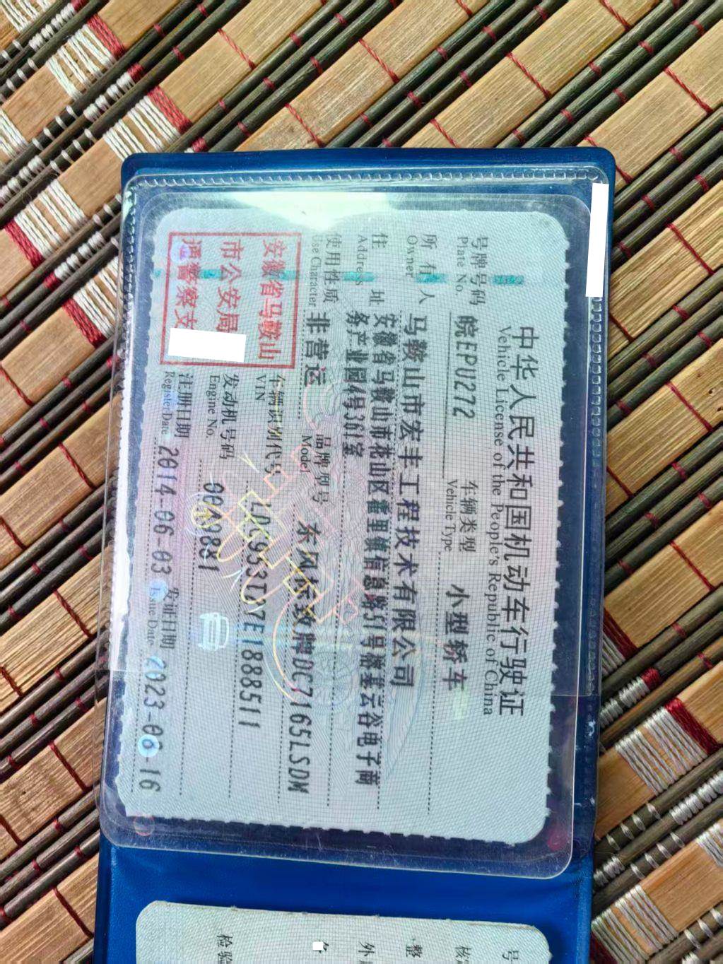 车辆归属地 安徽省马鞍山市 车辆停放仓库 安徽省马鞍山市马鞍山市