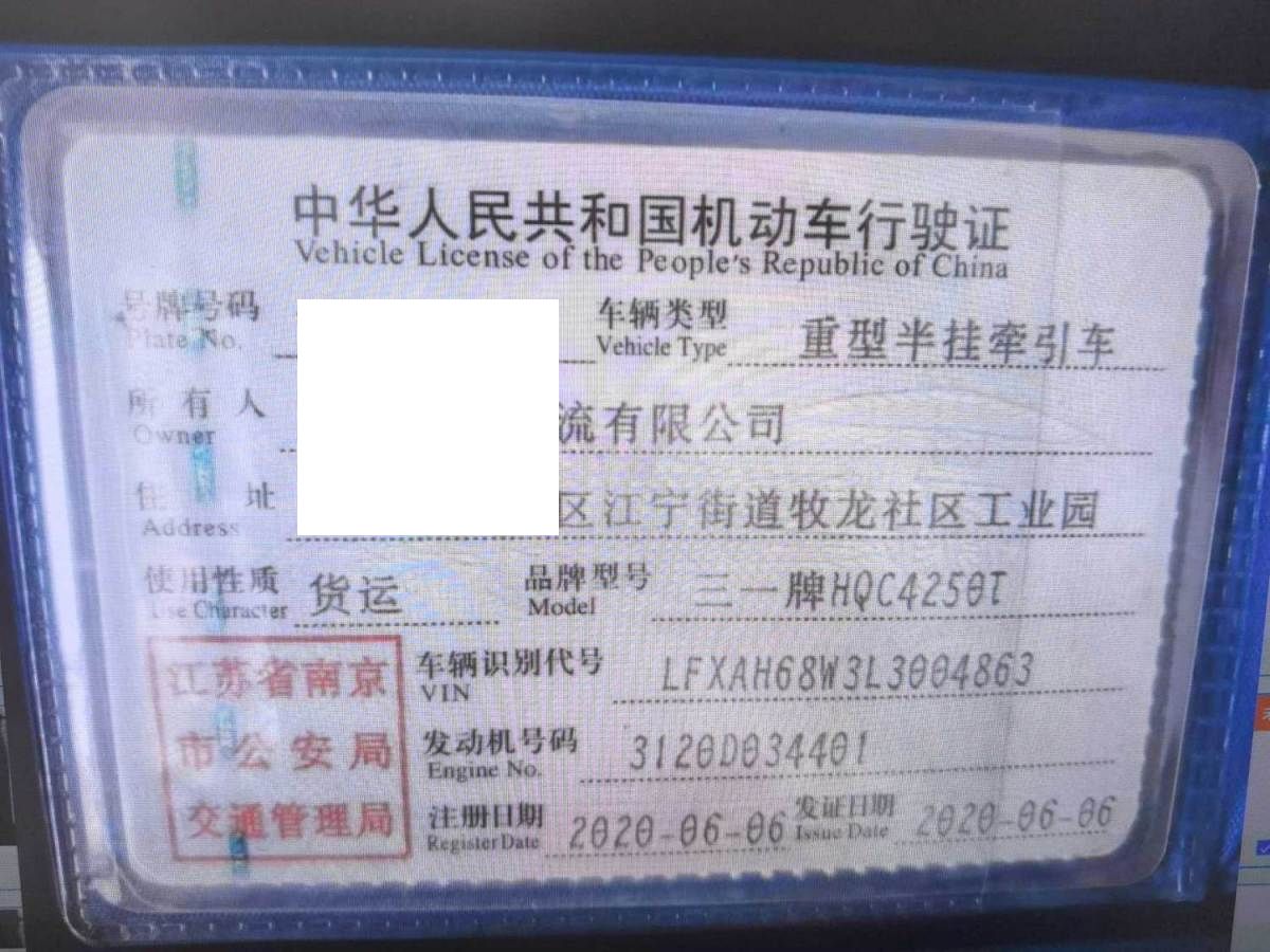 初次登记日期 2020-06-06 车辆名称 三一重卡