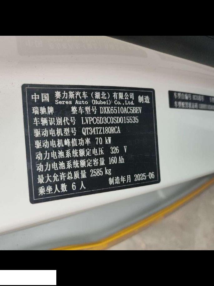 初次登记日期 2025-07-24 车辆名称 瑞驰汽车 瑞驰新能源