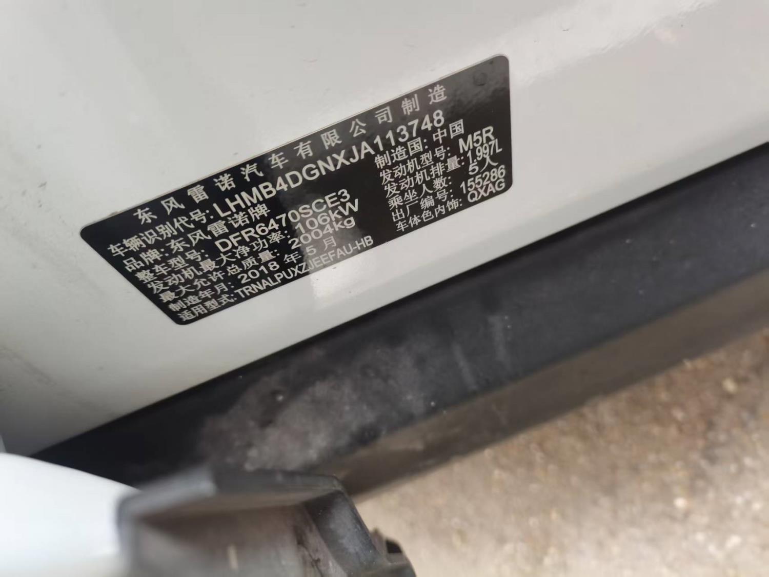 底盘号码 LHMB4DGNXJA113748 变速箱类型 自动