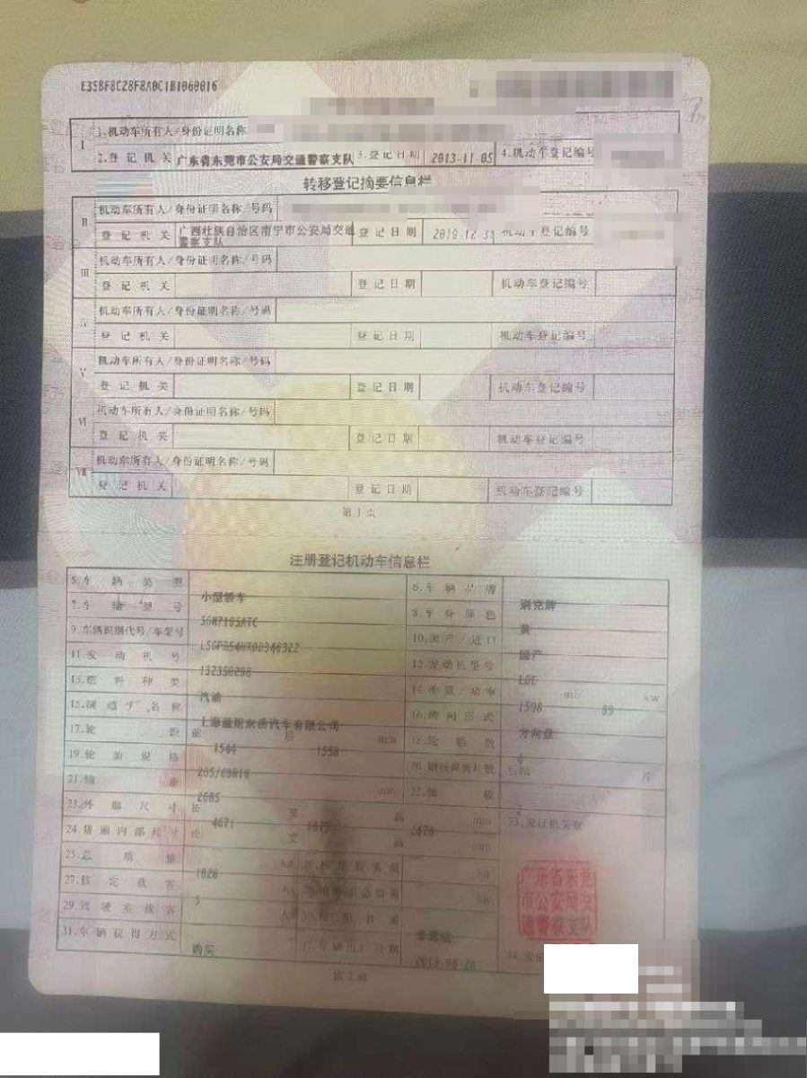初次登记日期 2013-11-05 车辆名称 别克 英朗