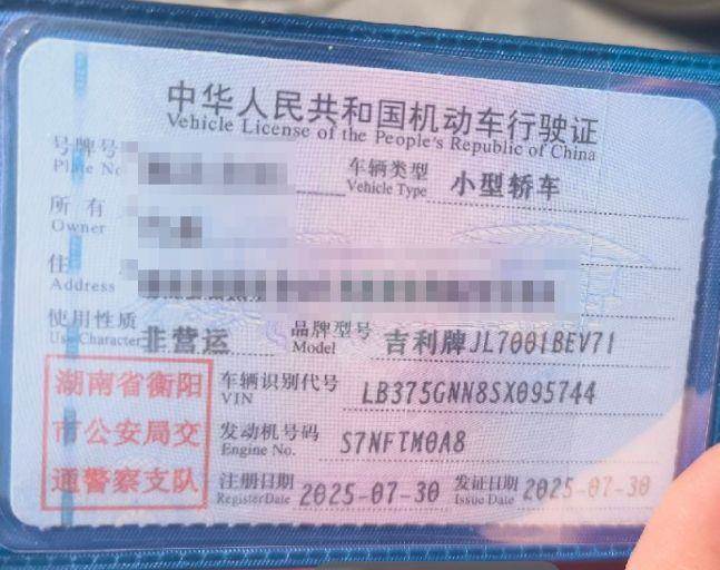 初次登记日期 2025-07-30 车辆名称 吉利银河 星愿