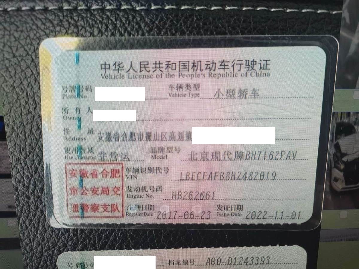 初次登记日期 2017-06-23 车辆名称 现代 名图