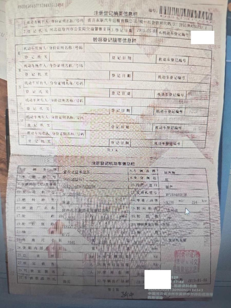初次登记日期 2019-05-08 车辆名称 陕汽 德龙