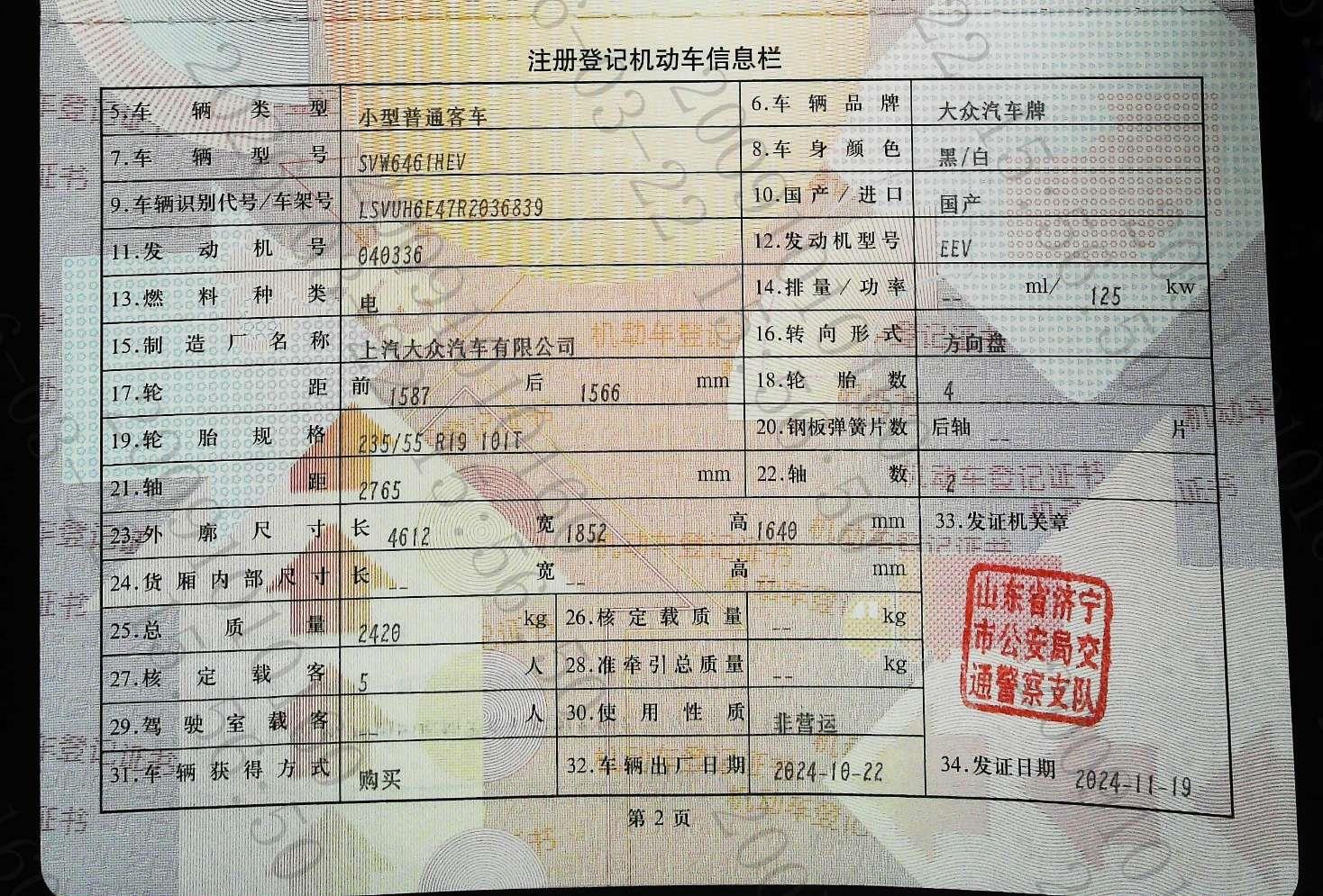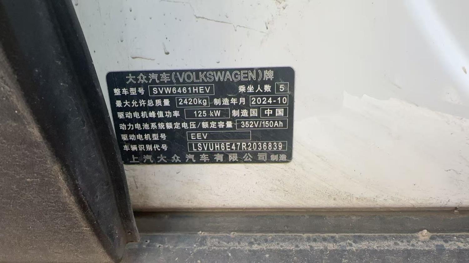 初次登记日期 2024-10-22 车辆名称 大众 ID