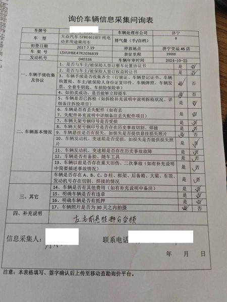 车架号是否受损 未知 使用性质 非营运