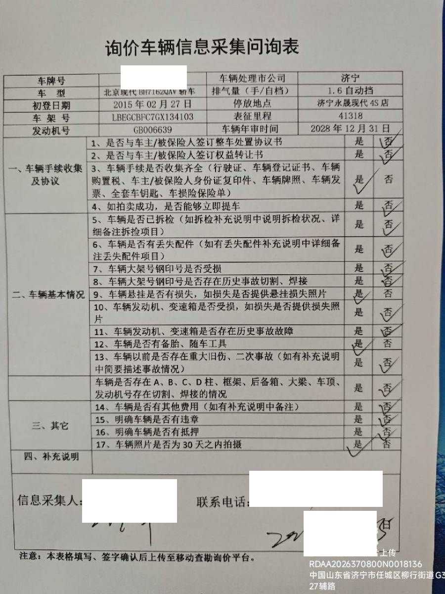 车牌号 鲁****** 品牌 现代
