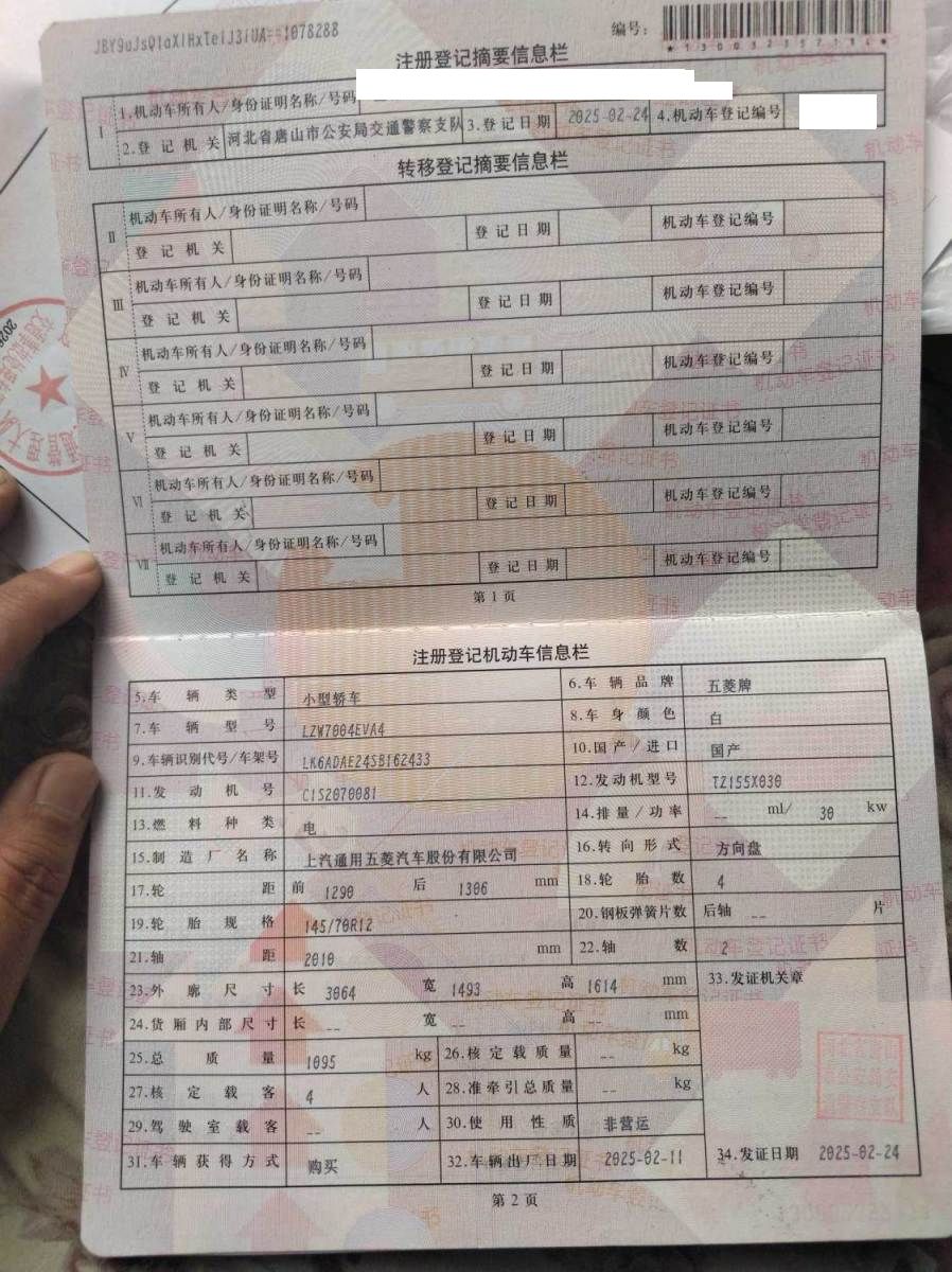 车牌号 冀****** 品牌 五菱