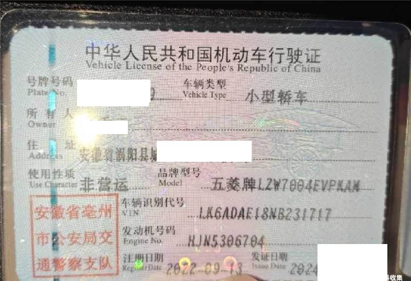 车牌号 皖****** 品牌 五菱