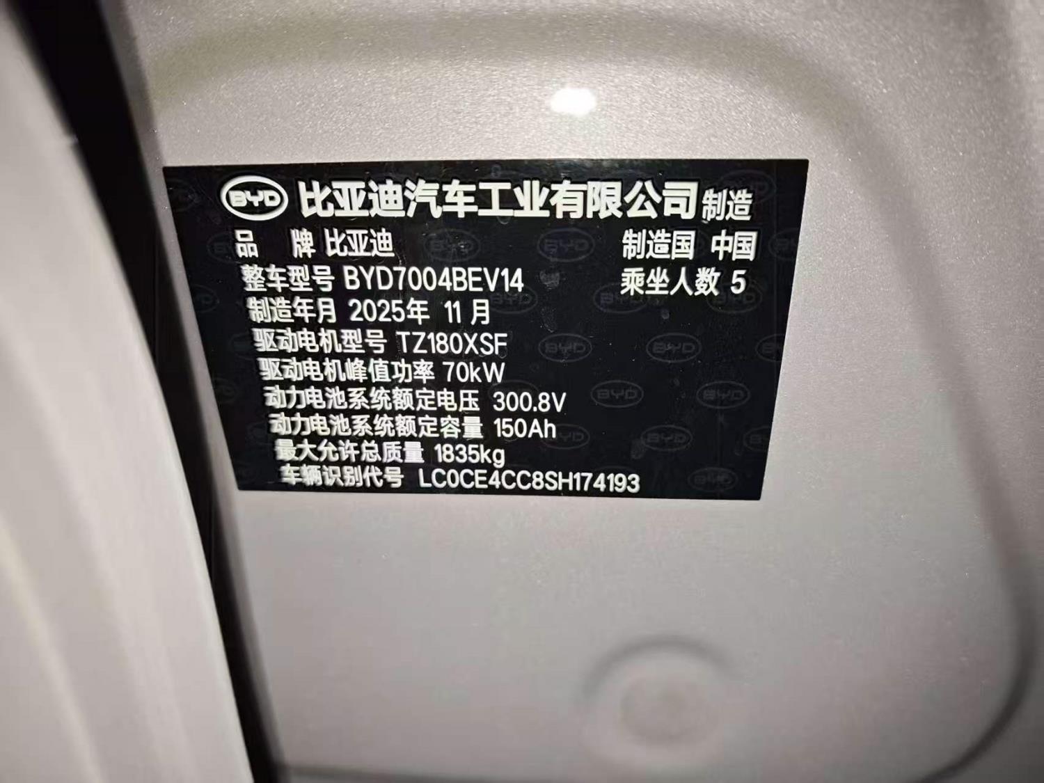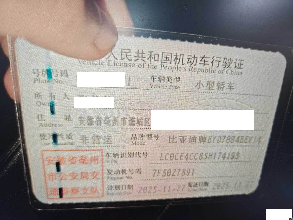 初次登记日期 2025-11-27 车辆名称 比亚迪 海豚