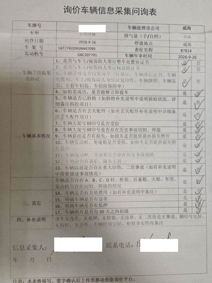 初次登记日期 2016-09-26 车辆名称 吉利汽车