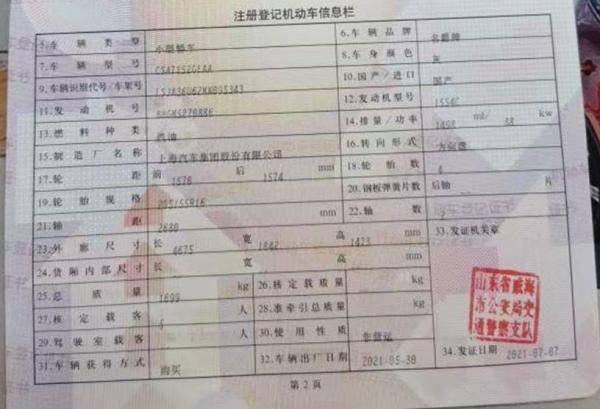 初次登记日期 2021-07-07 车辆名称 名爵牌