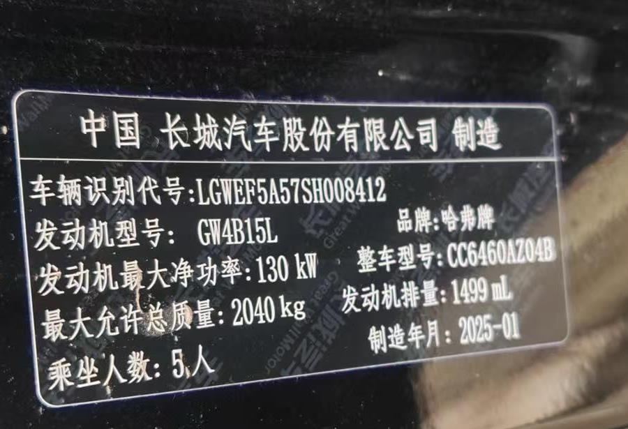 初次登记日期 2025-02-06 车辆名称 哈弗大狗