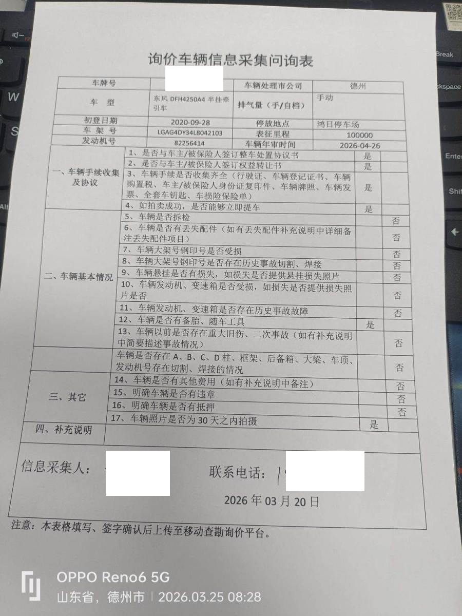 车架号是否受损 未知 使用性质 营运