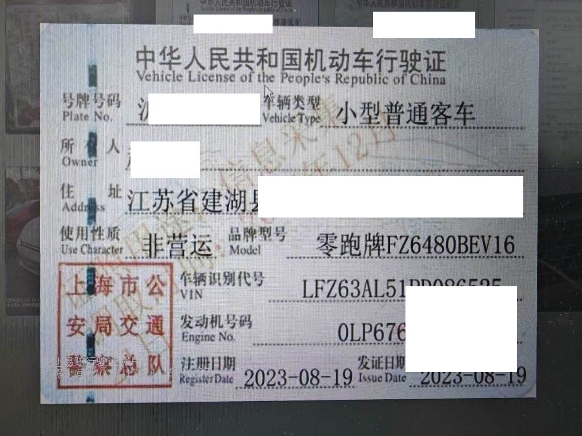 初次登记日期 2023-08-19 车辆名称 零跑汽车