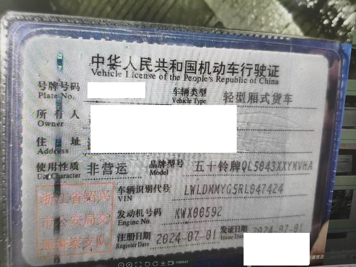 车牌号 浙****** 品牌 五十铃