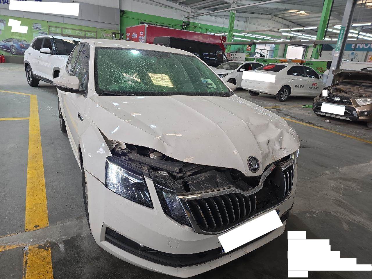 本车前部受损严重,气囊弹出,左右纵梁扭曲变形,发动机及变速箱未拆检看不到损失,不确定损坏,钢印车架号变形损坏。5年以上车辆报价后不得以二次事故为由提出议价或退车弃标。
