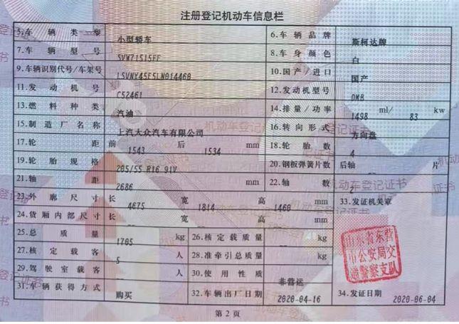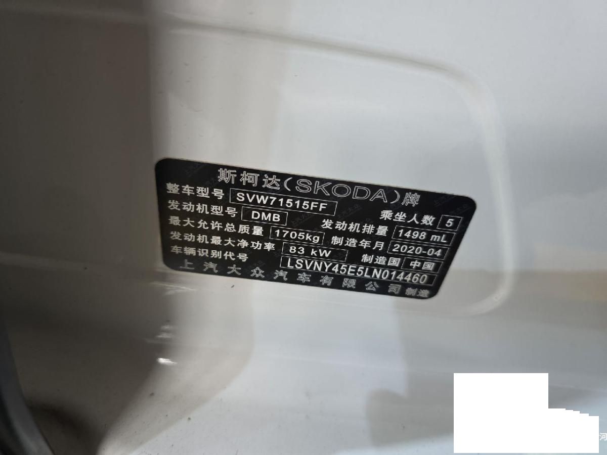 初次登记日期 2020-06-04 车辆名称 斯柯达 明锐