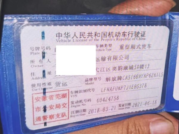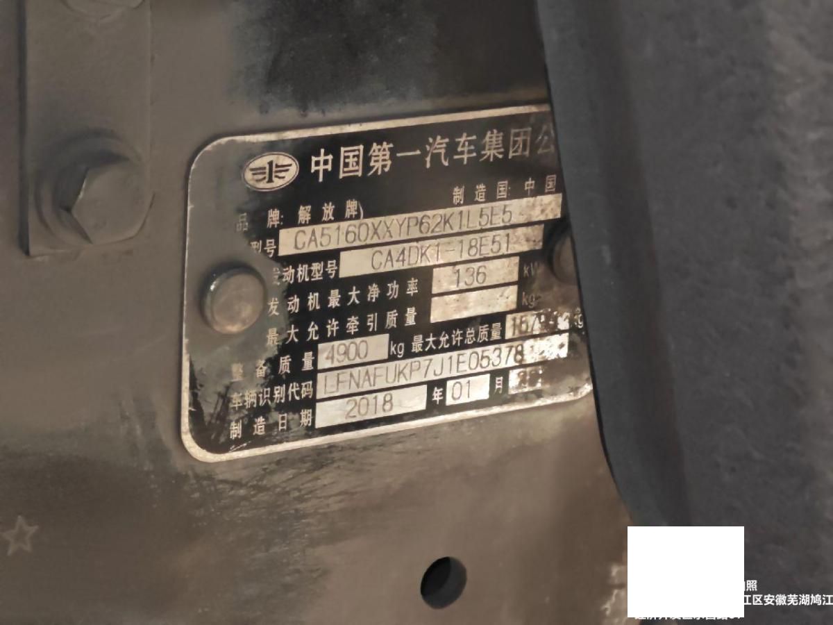 车牌号 皖****** 品牌 解放