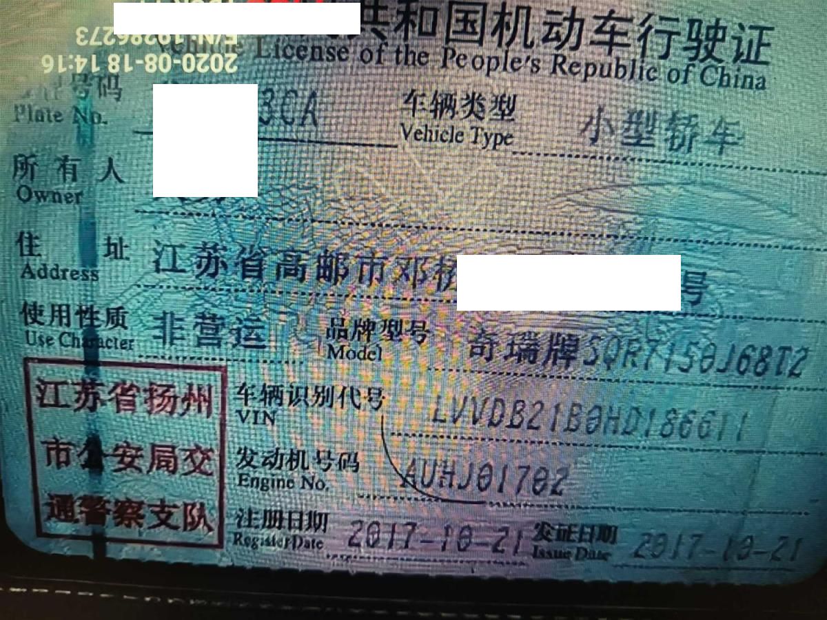车牌号 苏****** 品牌 奇瑞