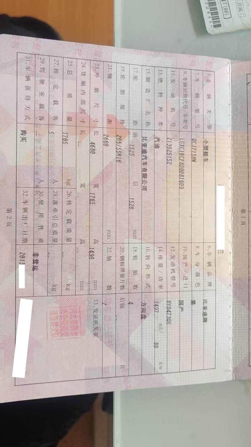 初次登记日期 2013-06-27 车辆名称 比亚迪 速锐