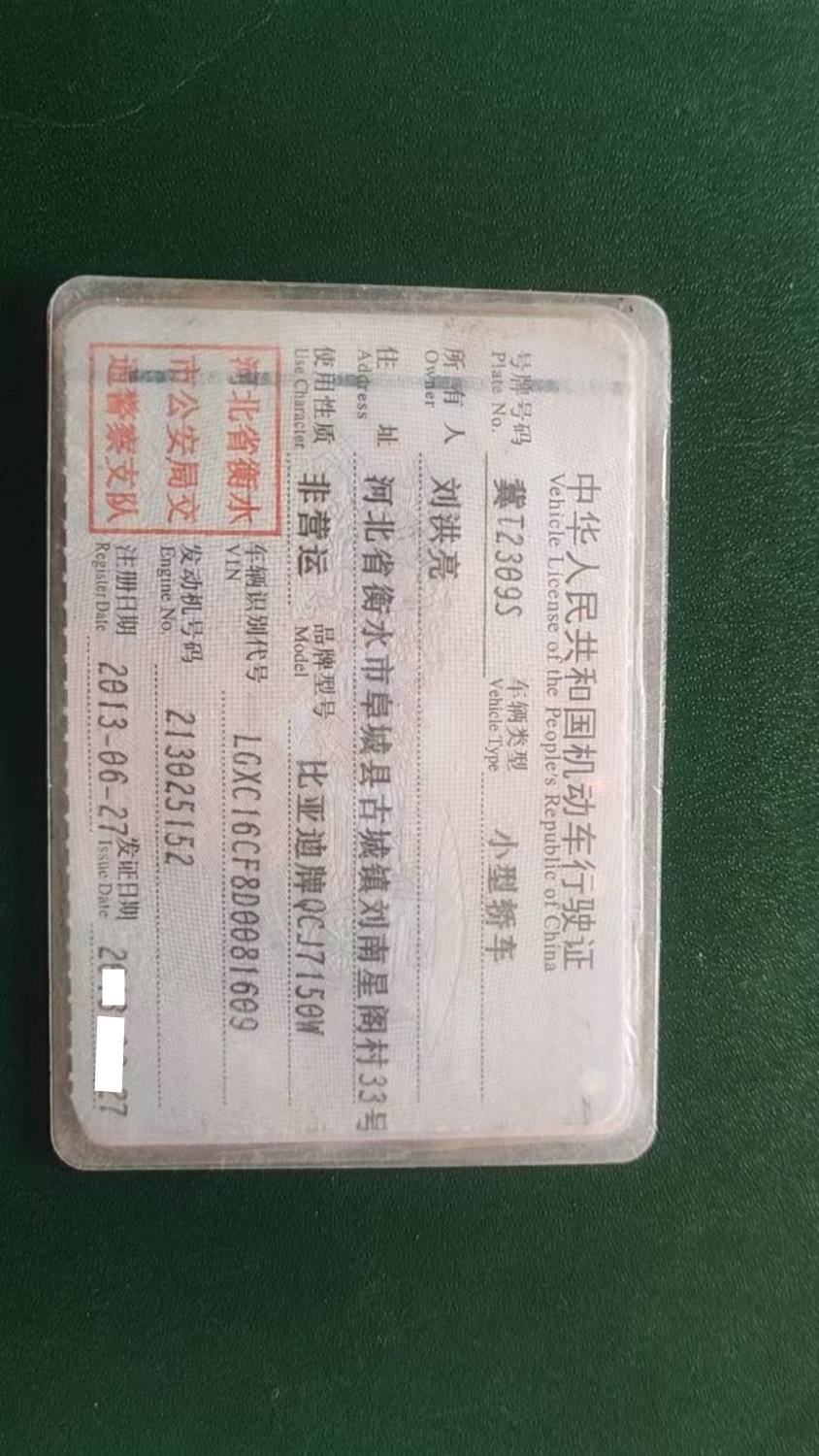 车牌号 冀****** 品牌 比亚迪