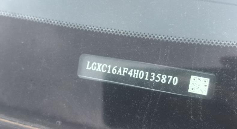 底盘号码 LGXC16AF4H0135870 变速箱类型 手动