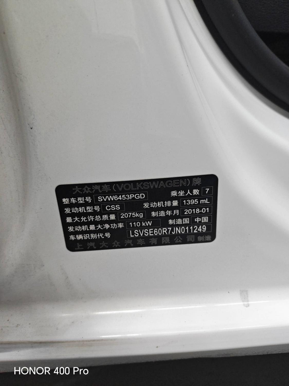 初次登记日期 2018-04-11 车辆名称 大众 途安