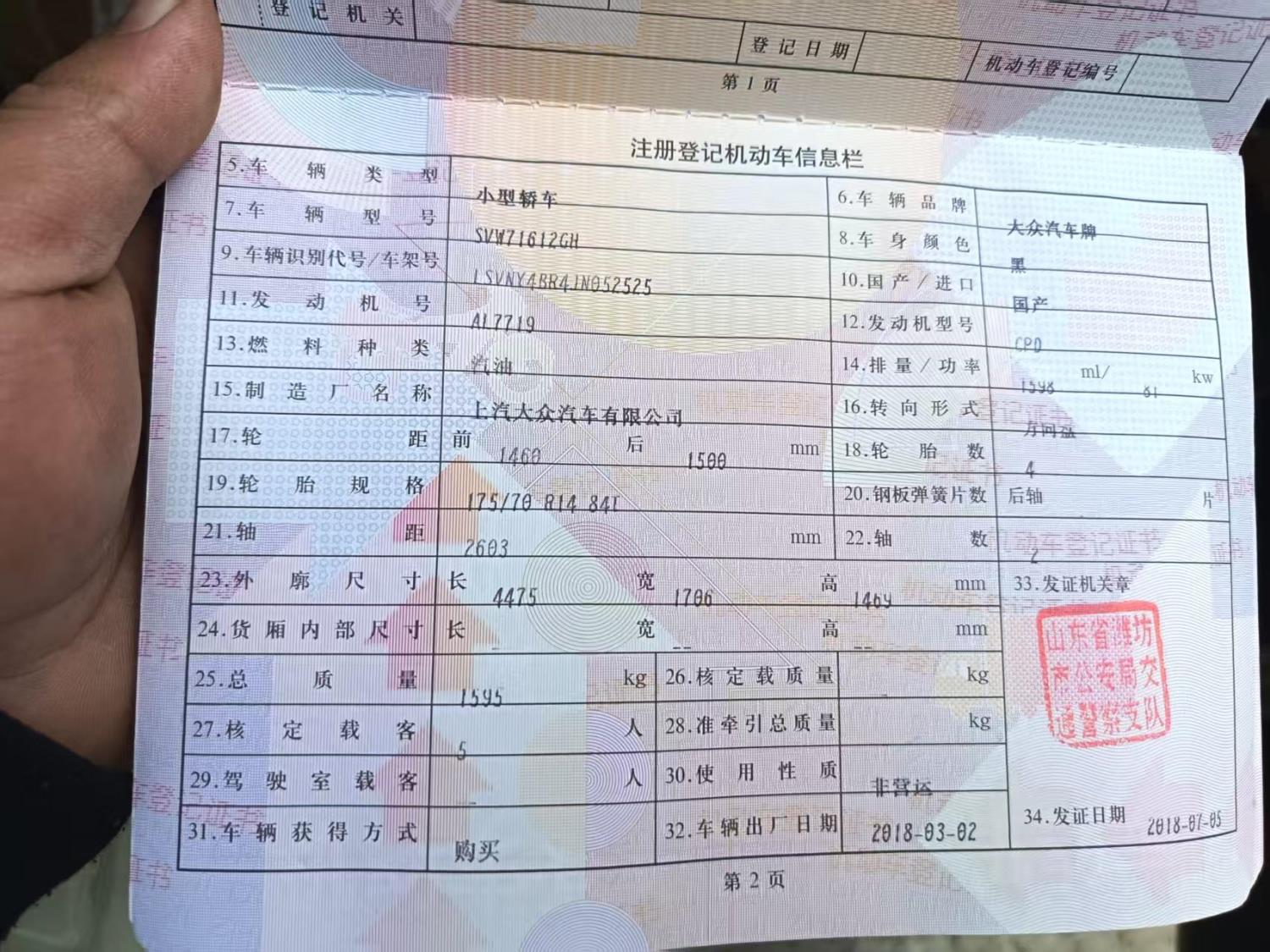 初次登记日期 2018-07-05 车辆名称 大众 桑塔纳
