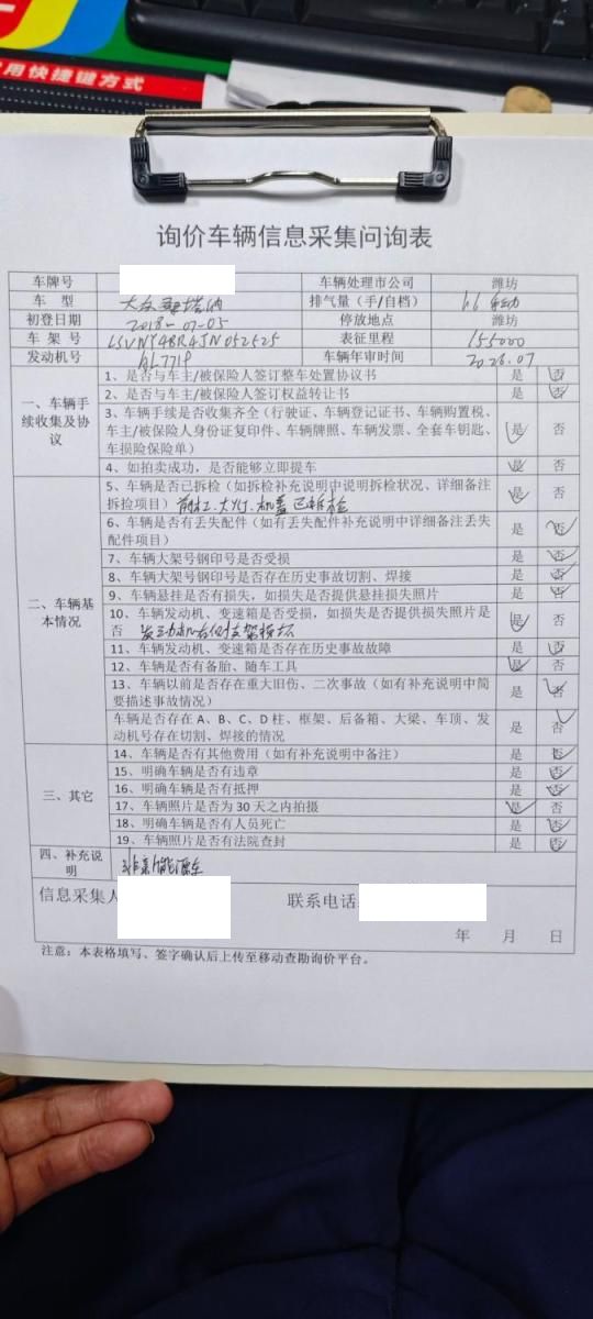 车架号是否受损 未知 使用性质 非营运