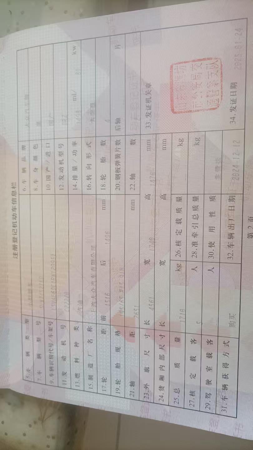 车辆归属地 山东省潍坊市 车辆停放仓库 山东省潍坊市