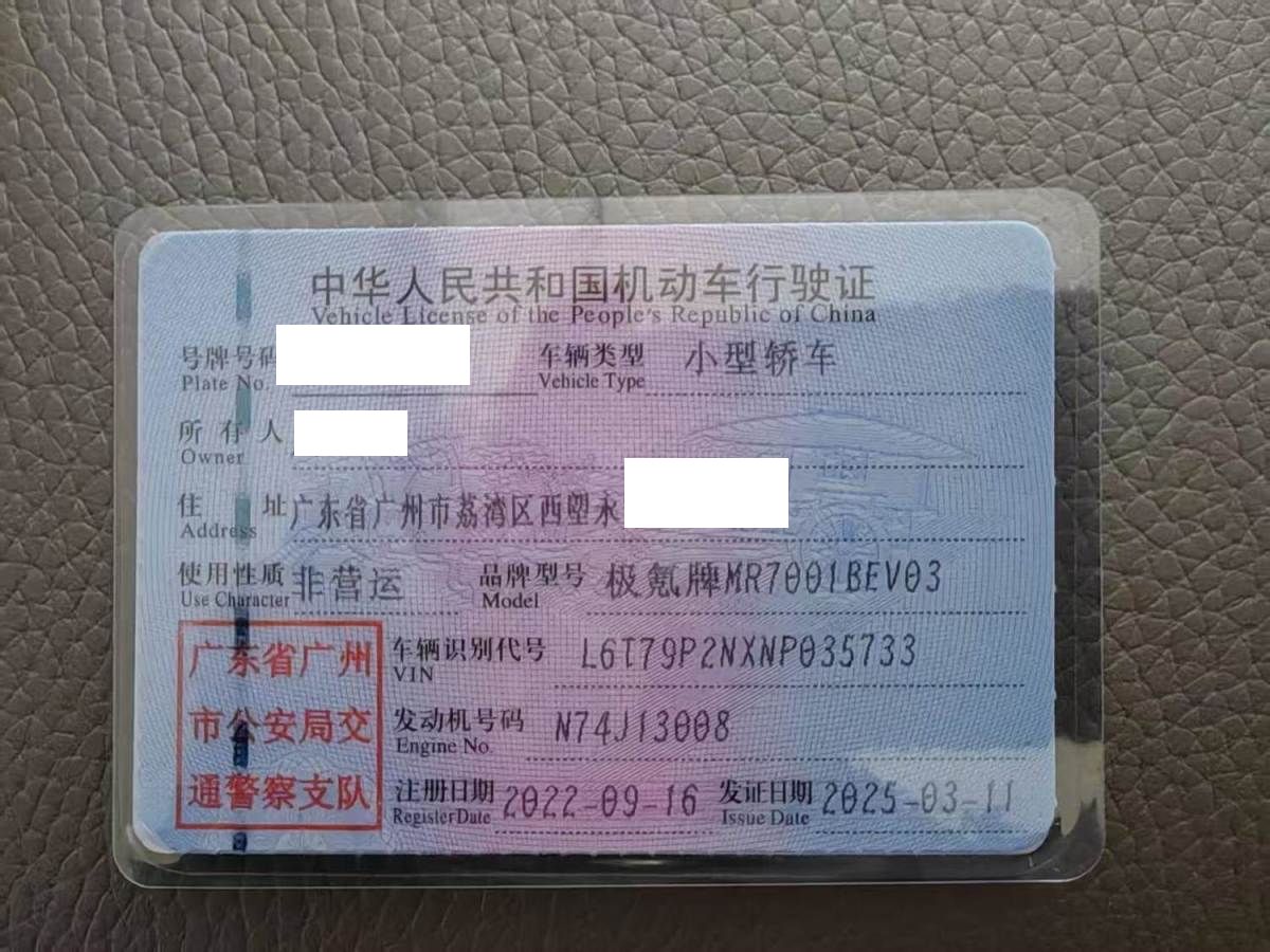 初次登记日期 2022-09-16 车辆名称 极氪牌
